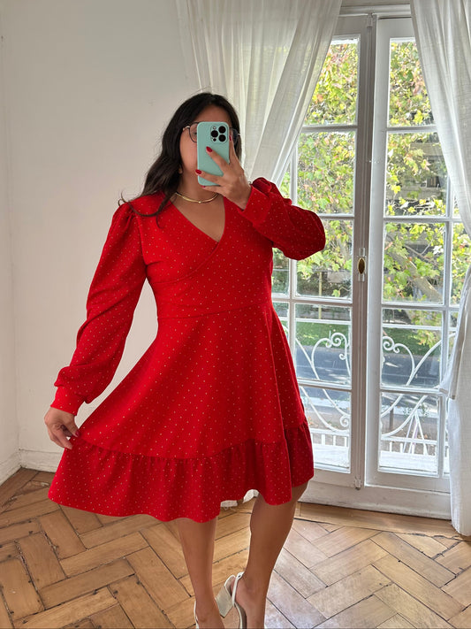 Vestido Dianna Puntos Dorados Manga Larga Gasa